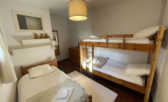 4 bedrooms: 2 bunk beds 1 single bed and 2 queen beds