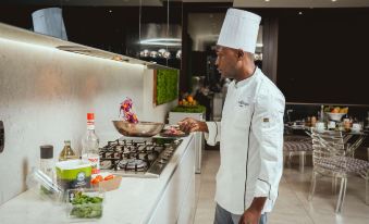 The location was perfect. A short transfer from the airport. Upon arrival we realised we should've preordered from the menu that was WhatsApped to us, but even though we didn't, the chef still accommodated us with an incredible freshly prepared meal. The room was outstanding, we felt like royalty. The staff were incredibly friendly and the next morning we had the most delicious breakfast (again freshly prepared in front of us by the chef).