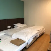 The room insulation very poor and quite noisy. We have troubled to sleep. Only 1 pillow on each single bed.
