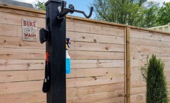 The Green Door Hideaway has self-check-in with our keyless keypad located on the front door. The unique code will be provided a few days before check-in. The partially fenced-in backyard is also the perfect place for kids to roam and have outdoor fun. Bringing bikes? They will have a safe home in our secure Bike Barn.