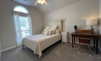 Enjoy the therapeutic hot tub, fire pit, or cook something tasty in the well-stocked kitchen including specialty coffees, the grill or flat griddle. Want to eat out? The house is a mile from some of the best dining options in the state. The backyard outdoor space is exceptional, with rocking chairs, a fountain, herb garden space and bird feeders that attract humming birds and all their friends.