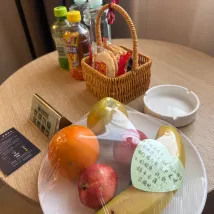 The front desk reception staff was very warm, thoughtful and meticulous. Snacks and fruits in the room were free of charge. The facilities were complete with dry and wet separation. There were also small gifts when checking out. It was a very comfortable stay.