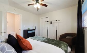 Clean. Comfy beds. Strong A/C makes it a great place to stay when visiting in the summertime. Had enough room in the backyard to play with the kids.