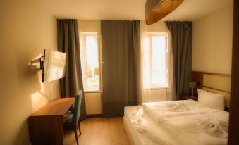 Das familiengeführte Hotel in günstiger Lage hat Charme. Manchmal soviel, dass die einfachsten Dinge vergessen wurden - zb. eine Lesebeleuchtung am Bett, die es ermöglicht im "Bett und Buch" tatsächlich lesen zu können (Zimmer Bert Brecht). Die umtriebige Chefin ist ebenso freundlich wie ihr Personal, eine Baguetterie im Haus sorgt für franzöisches Flair zum Tagesbeginn, und wer in der Wilhelm Busch Suite wohnt, kann selbst Kochen und danach in die Badewanne entschwinden. Liebenswert.