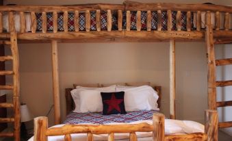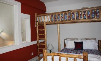 The third floor is a big bedroom that sleeps 5 in comfortable beds. One single bed is nestled into the wall, and there is a queen bed with two singles lofted above. Kiddos will delight in sleeping in this room, however it would be great for Mom and Dad too! It has a Jack and Jill bathroom to ensure privacy for everyone.