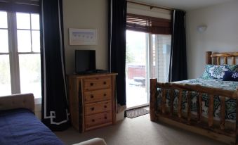 The lowest level of the condo contains two more bedrooms and laundry. The master bedroom (sleeps 4) has a king and daybed as well as direct access to the hot tub. The third bedroom contains a queen bed and direct access to the hot tub as well. They both have private bathrooms.