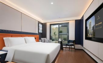 房間很寬敞,全部智能客控,乾淨衞生,店裡服務也很好,早餐能到10點,還有停車場,停車方便,推薦入住!