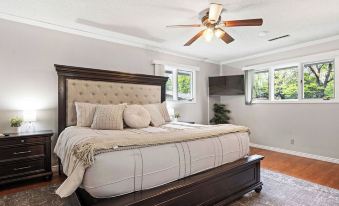 Look no further! Enjoy this one of a kind park setting with tree lined views. You will not find anything else like this amazing home. You will feel right at home with this large home perfect for the whole family 5 BA 3BA. Centrally located with access to everything you could need. Beautiful large remodeled kitchen, great for large family meals. Open backyard that backs up to Spring Creek Park. Large driveway offers enough parking for guests. Family friendly with 2 living rooms with Smart TVs.About pets:Pets allowed: limit 2 total.About checkOut:Check out before 11:00 AM.About children:Children allowed: ages 0-17.About customRules:No smoking of any kind in home. $500 fine.No house parties..About checkIn:Check in after 3:00 PM.About smoking:Smoking is not permitted.About minBookingAge:Minimum age to rent: 25.About events:No events allowed.