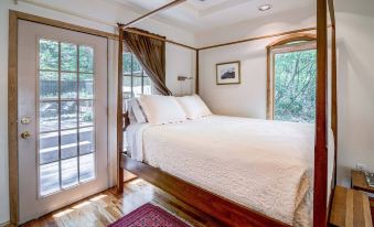 Downstairs, Migration Station boasts a fully equipped kitchen, large outdoor patio and bar area, bathroom with a spacious shower and heated floor tiles, and a washer/dryer. Bedroom with a queen located upstairs, with a bonus room attached for games, yoga, or reading and relaxing. Attached to the loft bedroom is a quaint back deck among the rhododendron and Japanese Maples, providing a private and meditative space in nature for your stay. Migration Station has proven a favorite sanctuary for artists and musicians from around the world.