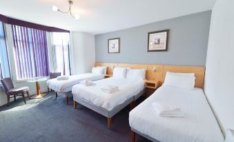 Alri Avoid this place like the plague (which, judging by the mould, may already live here). My partner and I wanted a relaxing October half-term break in Blackpool — instead, we got a horror movie filmed in peeling wallpaper and damp. The photos online must’ve been taken in a parallel universe. In reality? Mouldy furniture, bird droppings on the window, wallpaper hanging on for dear life, and a TV that last worked when dial-up internet was still a thing. The shower? A polite drizzle — and only warm if you run the tap and perform a small prayer ritual first. The toilet took an age to flush, rust covered everything metal, and the whole place smelled like disappointment. I complained to reception — the response was a heartfelt “Oh right,” followed by being told to book somewhere else. Even they knew it was a lost cause. Tiles missing on the steps (a lovely trip hazard), staff with all the enthusiasm of a damp sponge, and a hole in the ceiling on the third floor to really complete the experience. Breakfast was “continental,” if by continental you mean “bread exists.” We went elsewhere after that. The only saving grace was the manager, who actually tried to help. But honestly, if you value your sanity, go to the Ruskin across the road. Trust me — even The Twits would’ve checked out early.