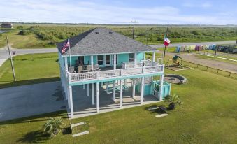 Come relax at our beach oasis with gorgeous sunrise and sunset views from the balcony! The house is located within a one minute walking distance to the beach. The house includes a pool table, outdoor tiki bar, charcoal grill, kids playset, fire pit, washer and dryer and outdoor shower. Perfect for the whole family or a couple's getaway along a quieter portion of Bolivar beach!