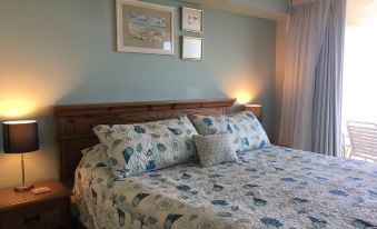 The condo’s petite kitchen has been updated with new appliances (dishwasher, microwave, stove/oven), cabinets, and a granite countertop. The bathroom vanity has also been updated with entirely new cabinets and a granite countertop. The condo offers sleeping accommodations for four, including a very comfortable king-size bed in the bedroom and a hotel-style queen-size pull-out sleeper sofa in the living area. There are 32" and 50" TVs (DirecTV with many channels), high-speed Wi-Fi Internet, and guest parking. The condo is well-appointed with most everything needed for your stay, including cookware, dishes, linens, a coffee maker, blender, iron and ironing board, hairdryer, towels, sheets, beach towels, and more. In the ground-floor storage, there is beach equipment, including a cooler, beach chairs, and bodyboard for a fun beach day!