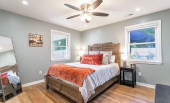 The Pisgah Portal is the perfect bikers getaway! 1 mile to the Pisgah National Forest and 10 miles to DuPont State Recreational Forest. House is set up with indoor bike parking stations, and an outdoor wash down and work stand and tools. Enjoy a bonfire and friendly game of corn hole after a day adventuring on the trails in the large fully fenced and private backyard or the countless breweries close by.About pets:Pets allowed: dogs less than 50 lbs per pet (limit 2 pets total).About checkOut:Check out before 10:00 AM.About children:Children allowed: ages 0-17.About checkIn:Check in after 4:00 PM.About smoking:Smoking is not permitted.About minBookingAge:Minimum age to rent: 24.About events:No events allowed.