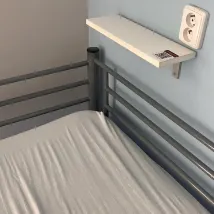 The beds each have a power socket and small shelf fixed to the wall though no individual light. You pick up bed linen at reception, make your own bed and put bedding in laundry basket when checking out. The pillow was lumpy and could do with being replaced. Sleep quality was good except one night with a very loud snorer (reception gives earplugs for free). It is winter and the room was nice and warm.