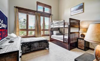 This 2,100+ sq. ft. penthouse features vaulted ceilings, chic furnishings, and a warm alpine vibe. Two king suites offer spa-inspired bathrooms, while the bunk room with four twins and a spacious den provide flexible accommodations for families or groups.
