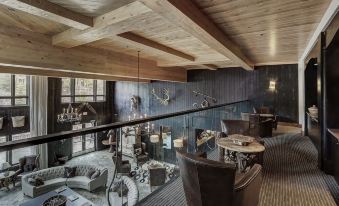 The open kitchen, dining, and living area is perfect for gathering after a day on the slopes. Relax by the fireplace, prepare dinner in the fully equipped gourmet kitchen, or step onto your balcony to take in snowy alpine sunsets over the mountains.