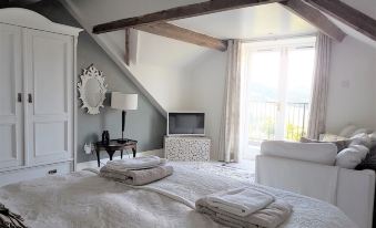 This cottage is exceptional in every respect. Inside the rooms have been decorated and furnished imaginatively; the kitchen is very well equipped and the beds are SO comfy. The garden is lovely as are the patio areas with breath taking views. Tricia, the host is delightful. She made us very welcome and insured that our holiday was a memorable and happy one.