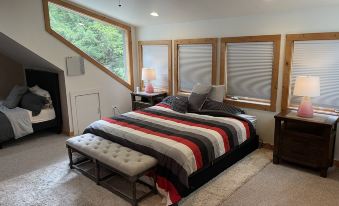 Visit the famous Lennon suite , the spacious McCartney suite including Harrison & Starr bedrooms . One bedroom located on ground floor themed as the fifth Beatle room . All near Skiing slopes , Restaurants , close Boone Shopping this Centrally located custom Home is also short drive to ASU College Campus and Historic Tweetsie Rail Road Theme park. Flat grassy yard for relaxing or kids playing in the sun or snow . Easy 5 minute access to 105 freeway & restaurants.
