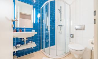The bathroom was good with good shower pressure and plenty of hot water. They have an all in one body wash in the shower and some body lotion by the sink too. We did bring some of our products but the hotel's was decent too. They had a towel rack which made our towels nice and warm and helped dry off our swimming stuff after a nice visit to the Széchenyi Thermal Baths.