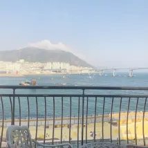 The reception staff were incredibly warm and helpful, even providing a complimentary Chinese map. Our room on the 7th floor was quite spacious. From the balcony, we had lovely views of the inner bay and a large sports/fitness complex, which gave the area a lively, local feel. Downstairs, there's a seafood BBQ; the eel and shellfish were on the pricey side, but they were definitely very fresh.