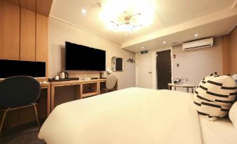 The room is not large, the facilities are complete, the cost-effectiveness is good, and the service personnel are also very good. The bed is considered a big bed, it's no problem for two people to sleep on. There are many shops around and it is also very close to the bus stop. There are no windows in the room, and the towels are too small, which is considered a disadvantage. You can wash clothes and dry them,and the machine doesn't stop during the day.hhh