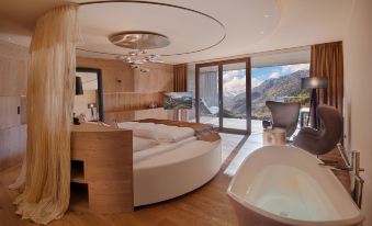 A lovely hotel to visit and spend 5 nights in after bustling Milan. Free parking across the road which is convenient and a lovely welcome at check in.. Rooms were renovated, spacious, modern and clean although my biggest disappointment was the 'panoramic' view I had paid extra for. I booked the panoramic suite and we are a family of 5, I opted for one room which has a sliding door that has a room where the kids sleep. The picture on the website shows the only the mountains which is what I expected to see as my panoramic view. I saw mountains but also the busy main road which the hotel is situated on and the lengthy car park. Along with the Klausberg Ski Centre. To say I was disappointed was an understatement. I asked to change rooms but was told all the panoramic views were the same. We paid around $1500 Aus a night so 800/900 Euro a night so this was not worth it for me. The family pool had an indoor and outdoor area which was beautiful and the buffet was like no other I had ever seen. The service was friendly although English was limited. I loved the hotel but with children wasn't able to use it to the full capacity. It is very far up the main road so makes driving extremely long with small children due to the mountains and windy roads. Scenery and food was amazing. And my kids loved the slide. Overpriced and annoyed about my view as I spent 5 days looking at a carpark and road with mountains in the background. If booking this room I'd call up and ask specifically about the view.