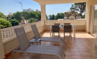 This comfortable fully equipped apartment is located in a quiet residential area of Cala Millor, in only 100 m from the sea and the jetty, surrounded by smaller residential complexes and bungalows, 15 minutes from Cala Bona harbour. It´s a spacious and bright acomodation which makes up the entire second floor of a 6-family-house with 3 terraces and nice sea- and town-views.