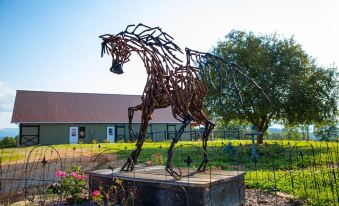 Absolutely stunning views of Indian River branch of Norris Lake. The views from Apt #2 are of the coral and surrounding mountains. From outside though the view by large firepit of the lake below will just take your breath away. The apartment itself was nicely appointed in a western style and everything was very clean. Any needs we had they were quick and accommodating. Definitely would have my family stay here again. Quick access to the marina and the public docks as well. But with the views from atop Horse Havens Property you’re most likely not going to want to leave.