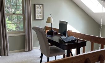Escape to Buck Hill Falls and retreat into nature with hiking trails that lead to beautiful waterfalls. This all-season resort community is the perfect place to enjoy everything BHF's has to offer with lots of on-site activities: golf, tennis, pickle-ball & basketball courts, an Olympic size swimming pool, and a kid’s summer camp! We are also just a short drive to adventure parks, ski and water parks and Mount Airy Lodge Casino for evening entertainment. This well-appointed, spacious 3-bedroom + study, town-home offers an open floor plan, cathedral ceiling, sky lights, and large loft which can be used as a game room, hang out space, or additional work area. On the first floor is the living-dining area, kitchen, half bath, private study, and master bedroom with en suite. The TV over the fireplace has cable and streaming accessibility. The open staircase leads to the second floor and a lower-level staircase below leading to the garage for easy access. On the second floor are two other bedrooms, a full bath, and loft that overlooks the living room with a TV for streaming only. Create your own personal spa and relax in the master en suite jetted tub. And if cooking is your thing, the fully stocked kitchen and outdoor combination gas and charcoal grill are there to serve your culinary desires. Our cottage, (as Buck Hillers call them) overlooks the golf course and is ideally located within walking distance to the club house and Fairway Grill, so it’s convenient to play or just relax and watch from your own back deck or the restaurant patio area. Come and enjoy this very special place where your memorable family vacation awaits!About pets:Pets allowed: dogs less than 20 lbs per pet (limit one pet total).Non-shedding dogs only. Absolutely No Cats!.About checkOut:Check out before 11:00 AM.About children:Children allowed: ages 3-17.About customRules:Candles - Do not burn candles. All candles inside the house are strictly decorative..Safety - No firearms or fireworks allowed on the property.,Cleaning - Guests are expected to keep the house clean while they are here or have a cleaning service come in at their own expense..About checkIn:Check in after 4:00 PM.About smoking:Smoking is not permitted.About minBookingAge:Minimum age to rent: 33.About events:No events allowed.