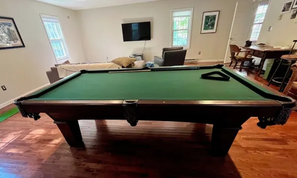Spectacular mountain getaway 2 hours from NYC and Philadelphia. This spacious home (approximately 3500 sf) with a pool table is great for families, lay out is perfect for share with lower level separation (2 bedrooms and bath). Enjoy all that Buck Hill Falls has to offer including the best 27 holes of golf, 10 har-tru tennis courts, olympic size pool, lawn bowling, swimming, hiking, and fishing. Year round local attractions include ski areas, water parks, casino, and shopping. House is located on golf course with beautiful views and sunsets over Chestnut Mountain. Gorgeous wood burning fireplace in the living room.