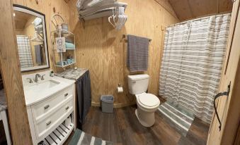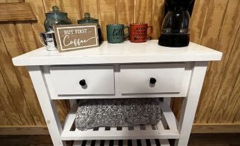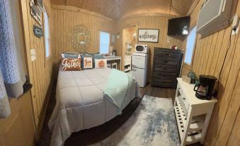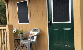 This Tiny House "cabin" is located right behind and to the left of a really good diner cafe, with the freshest diner type food anywhere, plus delectable desserts (pineapple creme pie, among others) and Blue Bell ice cream, to the delight of this Texan who grew up near the birth of Blue Bell in Brenham TX. I ate one to two meals a day there. It was that convenient. But even better, the staff were down home and Oklahoma friendly. Most people dining were regulars, and ranged from young families with small children to elders in the other side of 65 like myself. Heck, the whole town is friendly. The town policeman (Caney is so small and he was THE policeman) led me to the Tiny House the first night as my (new) Google GPS led me astray. The circle drive behind the Feed Bin Cafe (,a destination diner, since my cousin's graduating class had a scheduled reunion dinner there), was filled with a few more Tiny Homes (one repurposed as a convenient laundromat), a few RVs. It was not as crowded as an RV camp, and a lot more homey. The owner's go-to person let me in the first night. And then she also gave me a most excellent recommendation for a local car mechanic to fix my AC before I went on to Texas. All-in-all, this was one of my favorite stops on a month-long trip. Helpful, accommodating, and really a step beyond in helping this traveler on her way.
