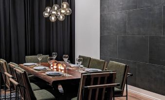DINNING ROOM: formal dinning room with solid wood table that seats 8, under a modern chandelier that casts a warm glow. Light the candles on the table for extra ambiance.