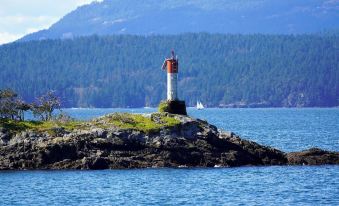 Bask in the glorious sunshine facing south on a bright day. Sip a cup of coffee while marveling at the unbounded sea, witnessing the majestic leaps of killer whales, the elegant soar of bald eagles, and the graceful glide of sailboats on the vast ocean. Located just 150m from Swimming Hole Park, 3-minute walk away.About pets:No pets allowed.About checkOut:Check out before 10:00 AM.About children:Children allowed: ages 0-17.About checkIn:Check in after 4:00 PM.About smoking:Smoking is not permitted.About minBookingAge:Minimum age to rent: 25.About events:No events allowed.