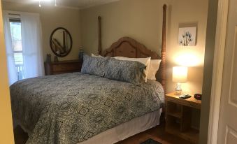 King bed (brand new top of the line Sealy), fully equiped and stocked kitchen including icemaker and dishwasher, in unit washer/dryer, all linens and towels included, central air/heat, 55" Smart TV, Direct TV, wifi and DVD in living room and Smart TV, Direct TV in bedroom. Close to the Blue Ridge Parkway, wineries, breweries, restaurants, hiking, mountain biking, kayaking and canoeing. Fiddlers Convention, Blue Ridge Music Center and famous Rex Theatre. If you need us to shop for you, or stock something special, we'd be happy to.About pets:Pets allowed.About checkOut:Check out before 12:00 PM.About children:Adults only.About customRules:Pets welcome, with a $20 pet fee left in unit upon checkout. Please respect the owners and future guests by only bringing flea free pets. Thank you!.About checkIn:Check in after 2:00 PM.About smoking:Smoking is not permitted.ABSOLUTELY NONE INSIDE OR OUT ON PROPERTY!.About events:No events allowed.