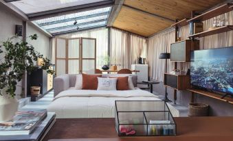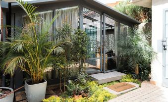 Welcome to our cozy glass studio nestled in a serene villa garden in Casablanca.