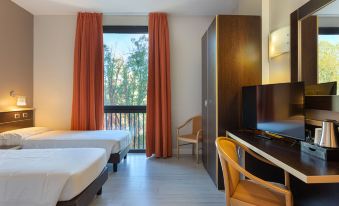 The hotel is located outside of Alessandria, so you need to travel by car to reach it. And it offers lots of parking space. It's ranked as a 4-star hotel, but feels more like a 3-star. The rooms are wide and spacious, the bathroom too. The view from the room is on the parking lot, and you can't open the window because there are too many mosquitoes in the area. We stayed at the hotel for two nights. At the first night it was full with some group of tourists, so the wi-fi internet didn't work at all, because of the overload, and the receptionist didn't offer any solution. At the second night there was a football team that occupied the hotel, and you could hear them roar all evening/night long... The breakfast was good, but the waiter in the breakfast hall didn't help or do anything for the guests that didn't speak Italian. So you had to make yourself your own cup of coffee... Also, the staff at the reception was very very very nice. BUT when I asked them if they could put something little in my parents' room (because my father had a birthday at the second day we stayed there), they agreed, and offered to put a cake. Which they did, and even added to that a bottle of champagne. It was a very nice surprise for my father, when we got back to the room at the evening. BUT they have charged us for that 50 euros (!!). Which was very UNFAIR, because in NO POINT of the conversation with them, they haven't mentioned that the cake or any kind of "a little surprise" will cost me money, or HOW MUCH money it may cost. They could have added how many items they've wanted and I would have to be obliged to pay... Which is very unfair and dishonest.