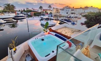 Magnificent T2 apartment high standing, fisherman's house overlooking more than 25m2 of exterior: 1 large south facing terrace overlooking the canals, and a solarium feet in the water overlooking one of the most beautiful canal of Empuriabrava (like on a boat!) . You can even fish from the terrace. Everything on foot (beach, restaurants, shops, bars). The scenery of Spain 30 minutes from France. 2 terraces with breathtaking views of the canals in the largest Marina in Europe.