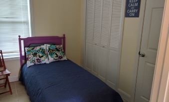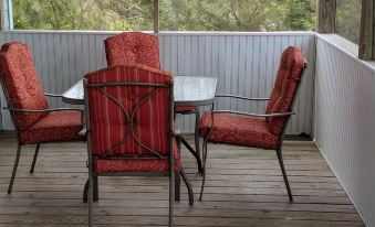 The cottage has a downstairs bedroom with 3 twin beds and upstairs features 1 queen bed. And with the queen-size sleeper sofa in the living room, our cottage can sleep up to seven. There is one full bath with tub downstairs and 1/2 bath upstairs plus an additional outside shower. Bed linens and towels are provided. Beds will be already made up in advance of your arrival. Additional towels are in the downstairs closet.