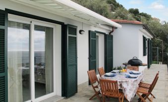 Modern house "La Perla del Mediterraneo", detached, built in 2016. 600 m from the centre of Cervo, 9 km from the centre of Imperia, 15 km from the centre of Alassio, on a slope, in the residential district, 150 m from the sea. Private: beautiful, well-kept garden 300 m2 (fenced) with wildlife garden and trees. Outdoor shower, parking at the house. Shop 1 km, supermarket 1.5 km, restaurant 250 m, bus stop 4.2 km, sandy beach "Andora" 6 km, rocky beach 150 m. Golf course (18 hole) 22 km. Please note: main road 100 m from the property. "La Perla del Mediterraneo", 3-room house 60 m2. Bright, modern and stylish furnishings: living/sleeping room with 1 double sofabed (140 cm, length 180 cm), dining table, satellite TV, radio, CD-player, electric heating and air conditioning. Exit to the terrace. 1 double bedroom with 1 french bed. Exit to the terrace. 1 room with 2 beds (80 cm, length 200 cm). Exit to the terrace. Open kitchen (oven, dishwasher, 4 gas rings, toaster, kettle, microwave, freezer, electric coffee machine). 2 showers/WC. Terrace, patio. Terrace furniture, barbecue (portable), deck chairs (4). Marvellous view of the sea. Facilities: washing machine, iron, children's high chair, baby cot. Internet (WiFi, free). Please note: non-smokers only. Maximum 1 pet/ dog allowed. IT008017C2LRHLA2BA