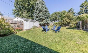 + A gorgeous tree-lined street, my home has a porch sitting area for you to relax and enjoy the neighborhood. It also has a fenced in back yard with seating for 6 and lush greenery.