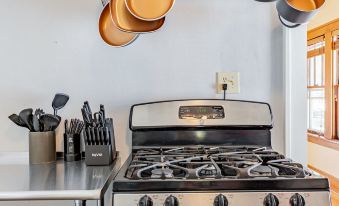 + Fully stocked kitchen and formal dining room for 6, there are ample dishes and cooking utensils for those staying for an extended period of time. The kitchen appliances include: gas stove, coffee machine, dishwasher, microwave, fridge and freezer.