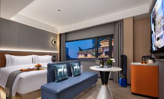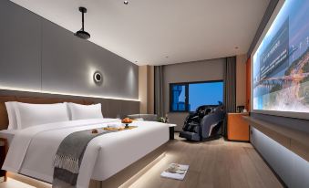 The hotel focuses on intelligent, healthy, high-end and luxurious decoration and configuration of the whole house, all rooms are equipped with Dyson air purifier, Dyson hair dryer set; All the sanitary ware in the room are jiumu brand sanitary ware. The bathroom is equipped with Jiumu intelligent constant temperature toilet, and the touch screen beauty mirror of the intelligent washing table, which has its own beauty effect. Brand zero pressure double layer latex mattress with high woven bare cotton cloth and goose down quilt core; The whole house small degree intelligent control system, a "small degree", more transmission robot, let you get more intelligent experience; Evian water in the room is free to drink, and two free soft drinks are also available. The audio-visual equipment in the room is 4K projector (free for members), and there is a 75-inch Xiaomi smart phone, which brings you the ultimate audio-visual enjoyment. The hotel's laundry room is equipped with washing machines, dryers and ironing equipment to bring a touch of home to your trip.