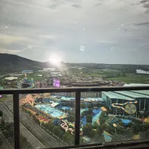 I accidentally booked the wrong room. I called the hotel and the staff was very friendly, offering suggestions and helping me rebook. The hotel environment was okay. During check-in, the front desk staff enthusiastically explained the attractions and even arranged a housekeeper. I have to give a thumbs up to our housekeeper, Xiaojing. She was incredibly nice and thoughtful. I was also very pleased with the room's location. From the balcony, I could see Water World across the street and Taihu Ancient Town, offering a beautiful night view.