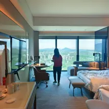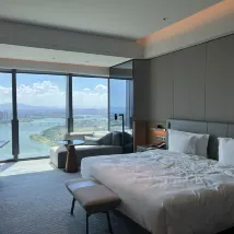 The views were absolutely stunning, making for a fantastic experience. Despite being on the 34th floor, the elevators were surprisingly efficient. They even have EV charging stations on B1, including slow chargers! However, the location was a bit tricky to find, and it took me a while to locate the hotel. Nevertheless, staying in this area is much more comfortable than being in the old town.