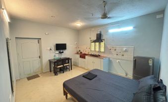 Enjoy a comfortable stay in this well-equipped room just a short walk from the stunning beaches and the iconic Mahabalipuram monuments. The space includes an attached kitchen with all essential cooking accessories, a gas stove, a kettle, and a fridge, making it perfect for short or long stays. The bathroom is fitted with hot water facilities for a relaxing shower experience. A washing machine is also available for added convenience. Whether you’re here for sightseeing or a peaceful beach getaway, this stay offers everything you need within walking distance.About pets:Pets allowed: less than 22 lbs per pet (limit one pet total).About children:Children allowed: ages 0-17.About smoking:Smoking is not permitted.About events:No events allowed.