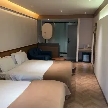 I booked this hotel online and, unsure if my preferred room type was available, I left a note. To my pleasant surprise, the hotel directly reserved the 'cave room' for us! It looked exactly like the photos online, and my child absolutely loved it. The front desk staff were very friendly and welcoming. The location is also excellent; it's right on Metro Line 2. From Chengdu East High-Speed Railway Station, you can take Line 2 directly to Niushikou Station. Plus, there's a shopping mall, Yonghui Supermarket, and a snack street right downstairs, which is incredibly convenient. What's more, popular spots like Chunxi Road (a famous influencer hotspot) are just three subway stops away, making it incredibly easy to get around.