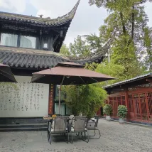 You can access Qingyang Palace directly from the hotel, and in the mornings, you can hear the peaceful sounds of bells and drums. The stay felt more like being a guest in a beautifully maintained private home belonging to a friend. Breakfast was an exquisite set menu, featuring authentic and delicious local specialty snacks. In the afternoon, you can relax in the courtyard or tea room, listen to the birds, and savor clear tea, immersing yourself in a sense of serene Zen. The bedding was comfortable, and the bathroom facilities were of superior quality. Although the hotel isn't large, the cultural amenities it offers – such as Baduanjin (a traditional Chinese exercise) classes, a study, and a tea room – are a significant bonus. Overall, it's an exceptional place to experience Chengdu's relaxed pace of life and authentic culture. I highly recommend it to guests seeking a unique and tranquil retreat.