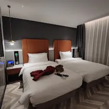 When I first checked in, there was hair everywhere. I wiped it with disinfectant wipes. Less than half an hour after I sat down, the bedside lamp suddenly fell off. It looked like the wire was broken. They asked me to change rooms. After I finally cleaned the room, they didn't agree to change rooms. There was no follow-up. After I checked out today, they called me to write a good review. I was talking about the problems with the room, and she interrupted me and asked me to give a good review. You can't say if there are problems with the hotel. Good reviews are a must. 🙃