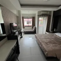There's quite a lot of facility such as laundry machine, swimming pool, snack selling. Good lacation nearby restaurant amd drink.