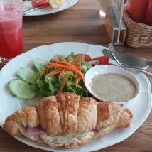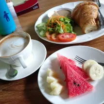 4. Breakfast price on the high side. 130 baht should include both juice and coffee. Good taste for the set breakfast.